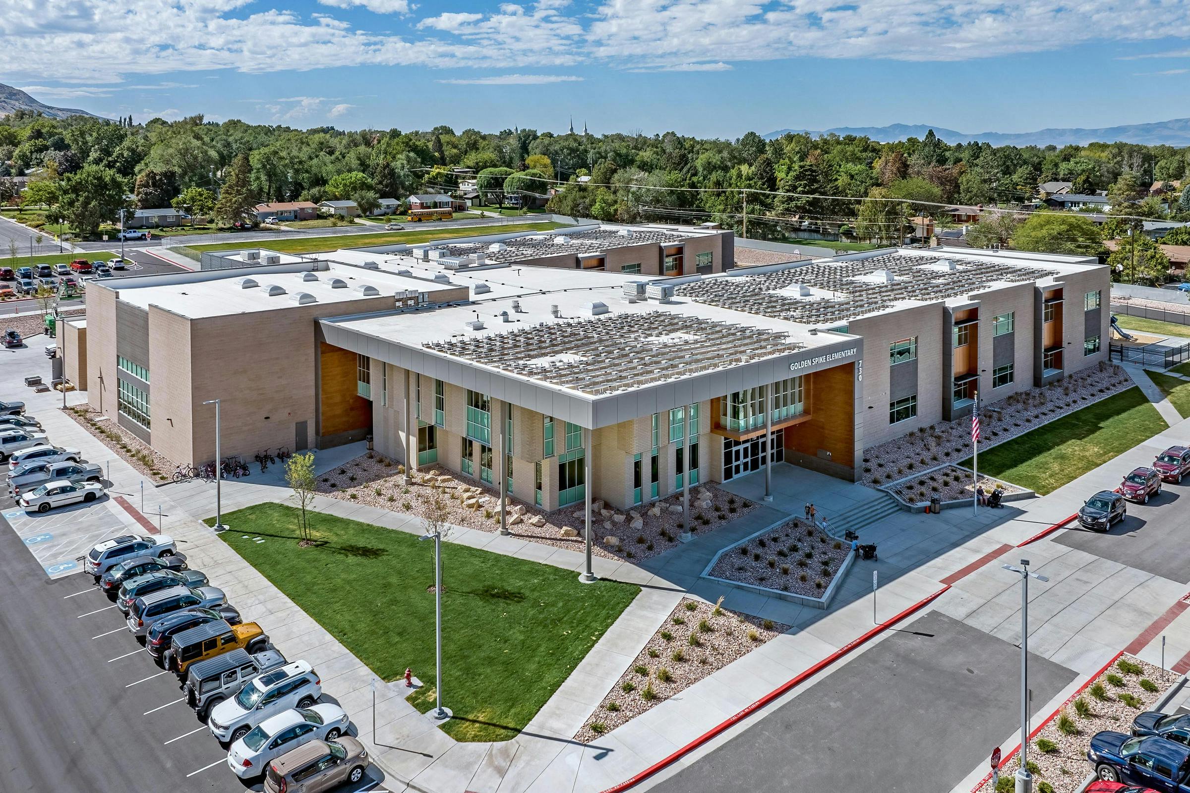 Golden Spike Elementary has been designed to be a net zero building through the inclusion of a robust building envelope, a 3 stage evaporative cooling system coupled with a geo-thermal heat pump system, and highly efficient LED lighting. This approach has reduced the annual operating costs for previous versions of this prototype to approximately 37 cents per square foot, as opposed to the 98 cents per square foot most designs are currently operating at. Additionally, a photovoltaic array has been included on the roof to further reduce energy costs. This measure has been estimated to reduce the remaining operating costs to approximately 17 cents per square foot, resulting in cost savings for the District.