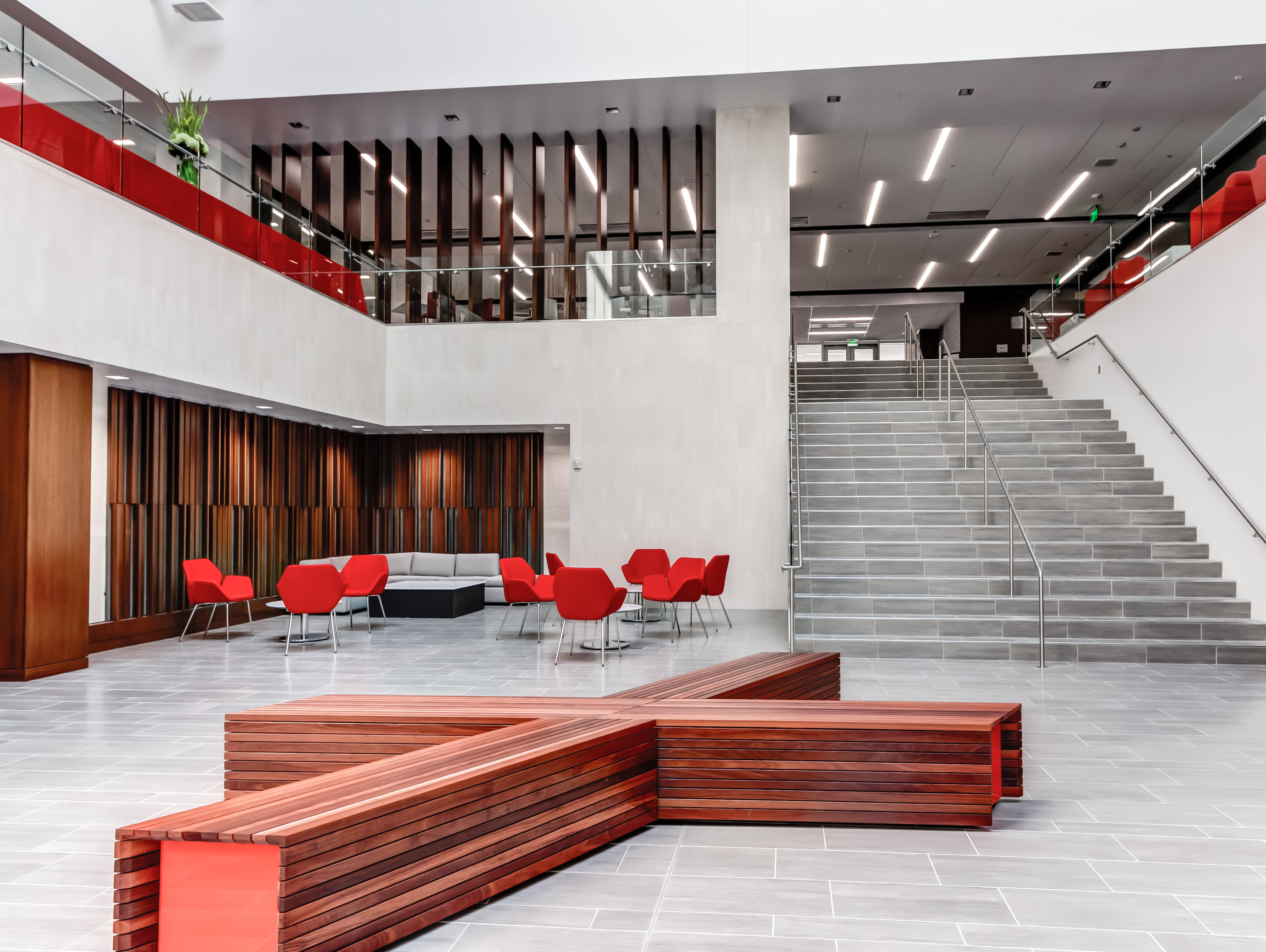 The interior spaces include ample collaborative student study spaces, flexible centers to enable and promote innovative legal research and integrated study opportunities, as well as generous community and event spaces to facilitate the thousands of community-oriented events held by the college each year. Access to technology, a student study area with a kid's playroom, and proximity of students to faculty all aid in improving engagement and interaction for all building users. The site and building were designed for equal experiences for all visitors, regardless of abilities. The public-facing library is located on the first floor, most accessible to the regional transit systems. The elevators open on both sides to minimize disruption for those with limited mobility and the accessibility garden provides a comfortable path to travel east-west and access the heart of campus. The college is also optimally located at the southwest of the University of Utah, a key gateway to the campus and a welcoming plaza for building and campus visitors.